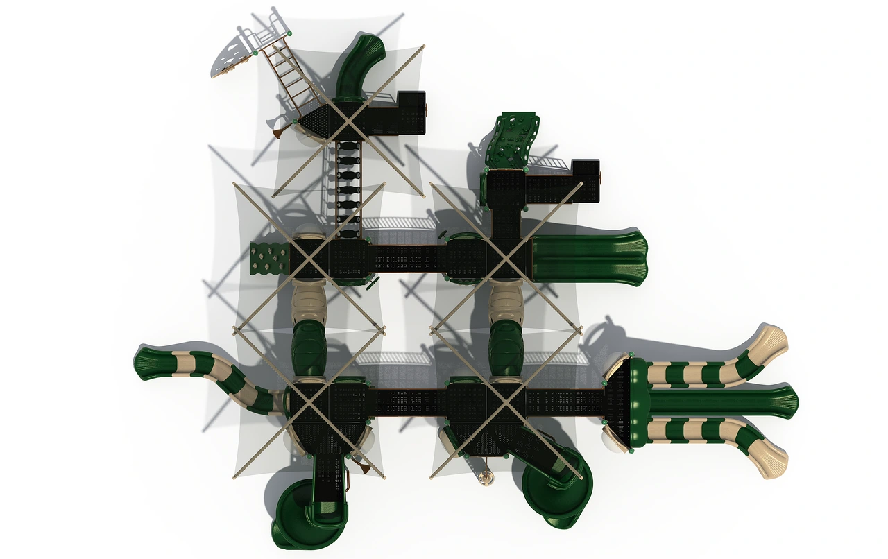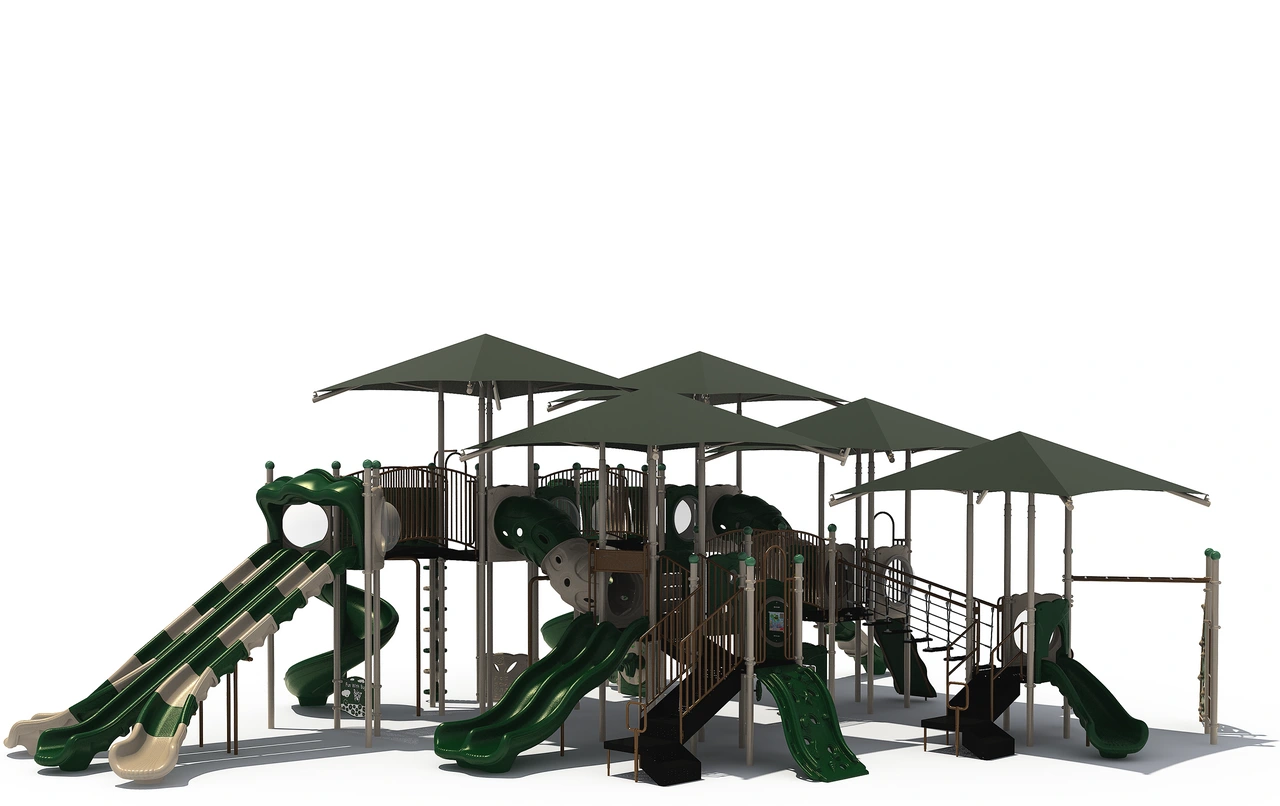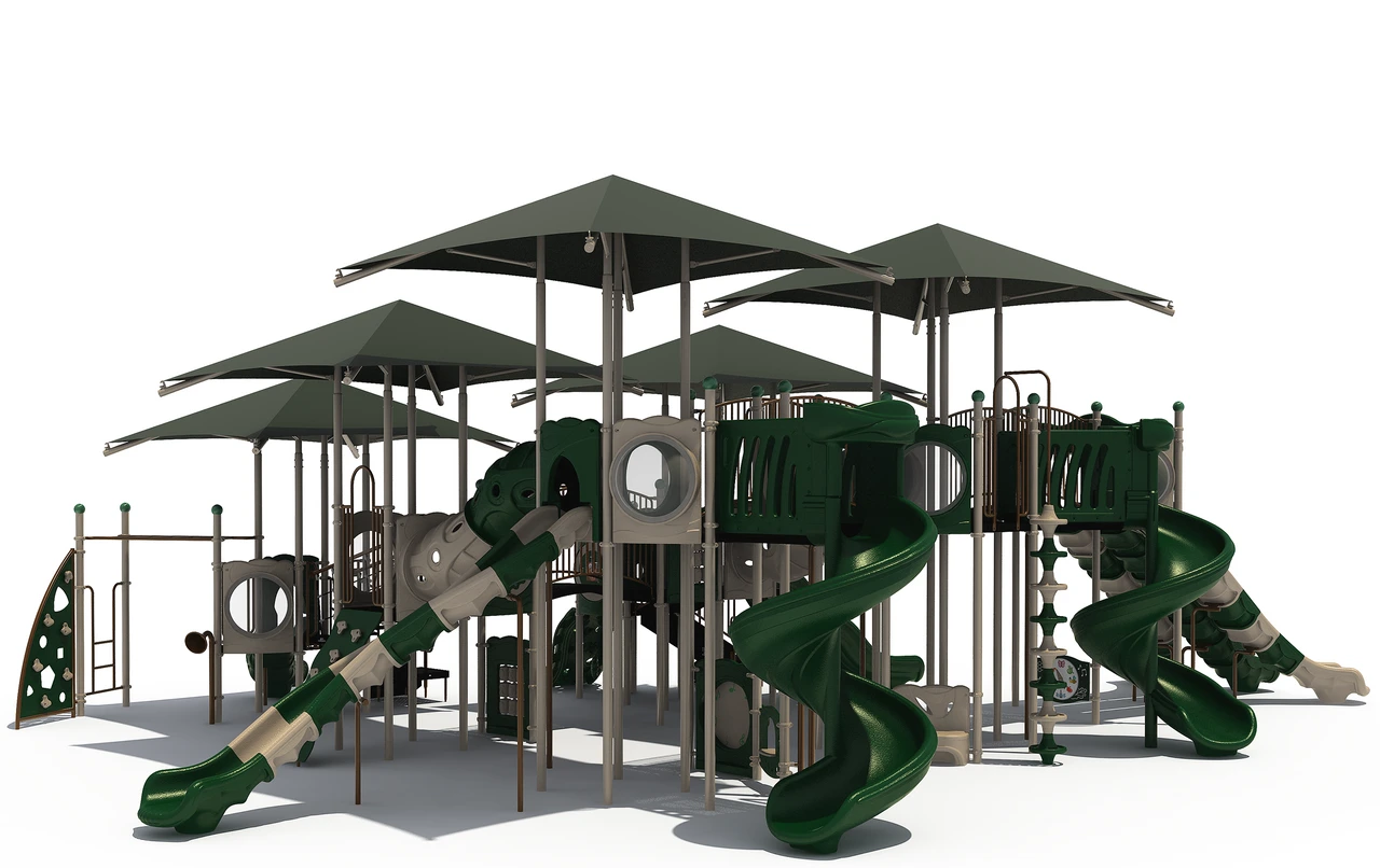 Wonderland is the ultimate commercial playground experience that will ignite children’s imaginations and keep them active for hours on end. This expansive commercial playground masterpiece is meticulously designed to inspire creativity and promote physical development in a safe and thrilling environment. Wonderland boasts a host of exciting commercial play features, including two exhilarating Spiral Slides and a Triple Sectional Slide for excitement and adventure, ensuring children will have a blast while honing their motor skills. For those seeking a challenge, our Challenge Ladder beckons adventurers to climb to new heights, fostering confidence and agility. The inclusion of bridges, tunnels, and a multitude of climbers further enhances the adventure, allowing children to use their imagination while exploring and navigating their way through this captivating commercial playground Wonderland.